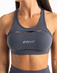 Way too cute to cover up. This bra is part of ECHT's signature Range series . It's perfect for medium-intensity workouts and even cuter with the matching Range Bike Shorts or Range Leggings! Featuring a scoop neckline with three front key holes to keep air flowing -  this sports bra gives you flexible support and full freedom of movement.