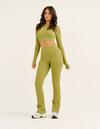 Arise Comfort Mid-Waist Flare Leggings - Olive
