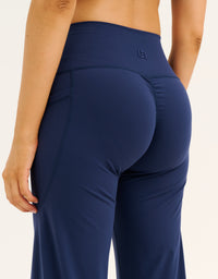 Blending the comfort of Lycra with a sleek wide leg silhouette, the Invisible Scrunch Pant is made for studio to street wear. Supportive details and soft fabrication make them an effortless staple.