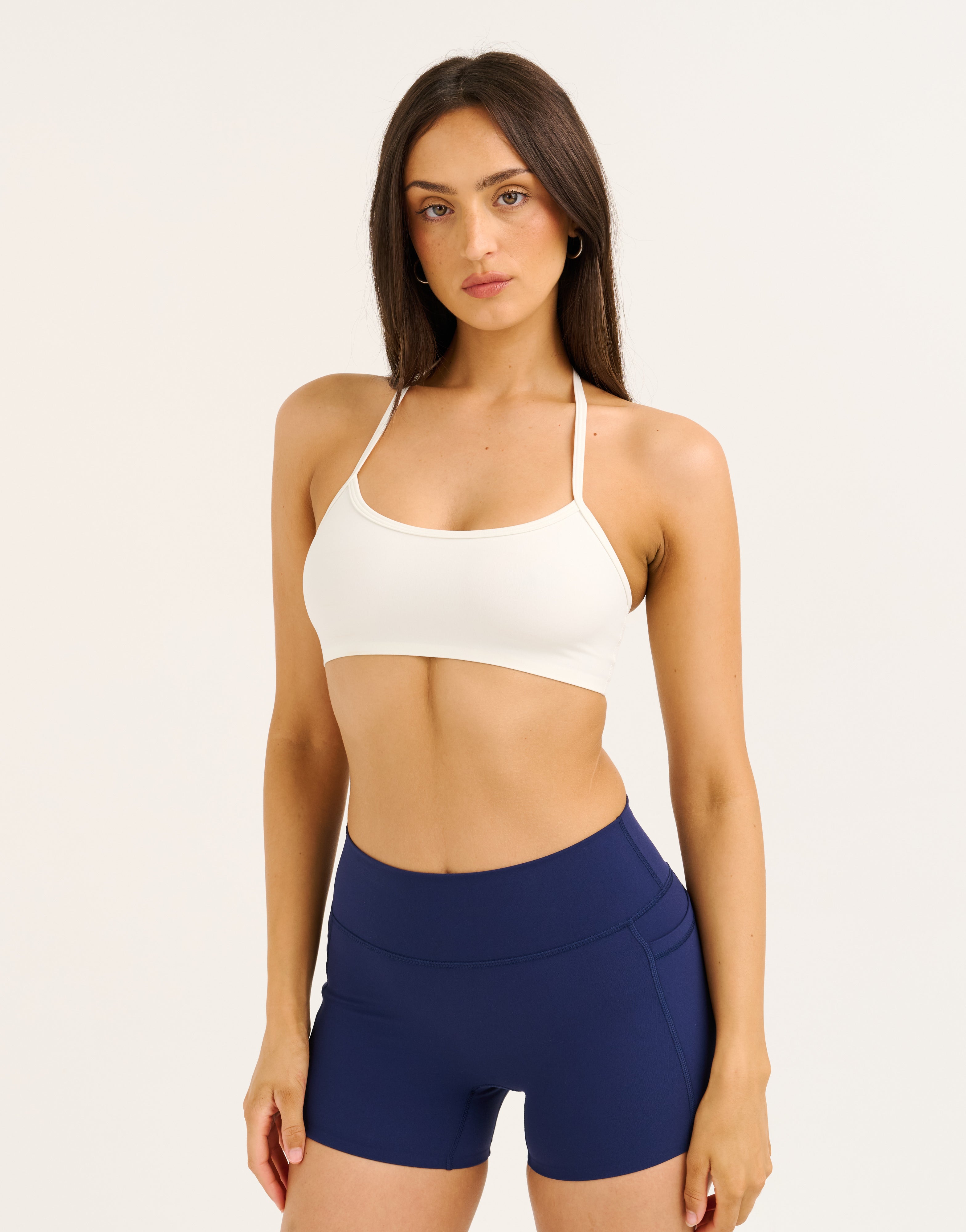 Engineered with Lycra for a supportive yet lightweight feel, the Seamless Halter Sports Bra delivers all day comfort with an elevated edge.