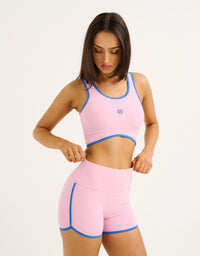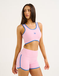 The Mode Contrast Crop pairs a clean & supportive silhouette with a pop of contrast trimming for a fresh, retro sport look that pairs perfectly with the matching shorts.